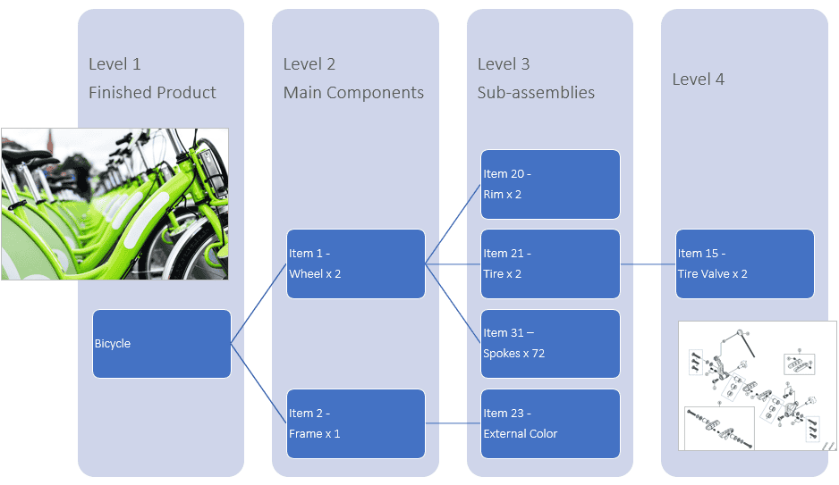 Some businesses have complex, multi-level Bills of Materials (BOMs that contain other BOMs). Managing multi-level BOMs can be a challenge.